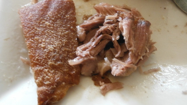 本来なら豚の丸焼きなのだが、ここでは豚の皮と肉の