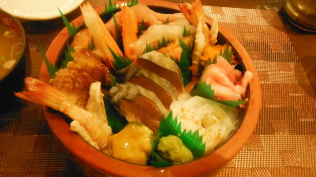 2日目はイカ天ぷらと上ちらし。美味しかった。