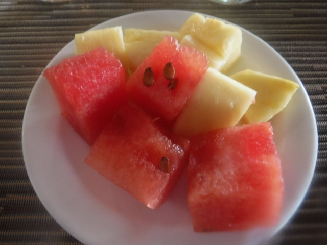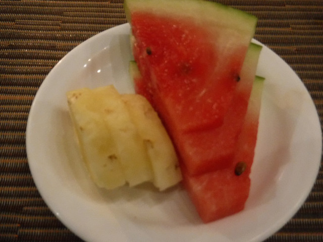 スミロンブルーウォーターの食事。ハーフボードで朝食と夕食のビュッフェは無料。トリップアドバイザーの口コミに不味くて食べられないと書いてあったが、そんな事は全くなく、大変美味しくいただいた。