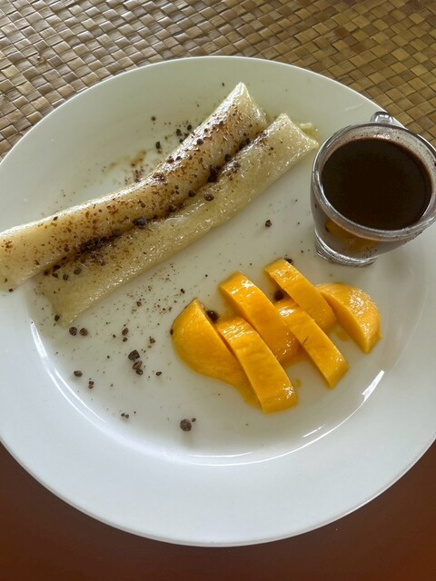 そして Cebuano delicacy。もちっとしたスティッキーライス自体も良いのだけれど、ディップするホットチョコレートソースが「甘すぎない」のが最高だった。マンゴーのフレッシュな甘みとも相性抜群で、南国デザートの完成度の高さに素直に感動!