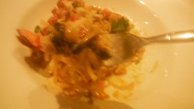 次に大エビ入り海の幸のトマトスパゲッティ―。ありきたりだが