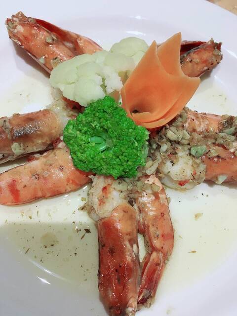 ディナーメニューも食べてみたく最終日はこちらでガーリックシュリンプと辛い焼きそばをいただきました