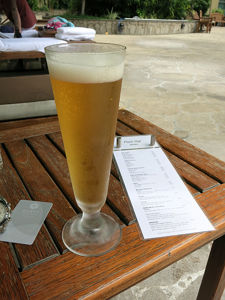 天気が悪く寒かったが、南国気分を味わいたくてプールでビール。