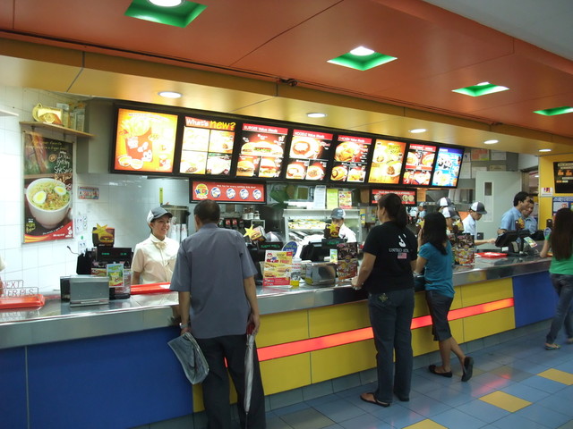 どこを歩いていても、ジョリビーの看板を見ることができます。国民的ファーストフード店だと言われている理由がわかります。ロビンソンの4階にお店がありました。ハンバーガー、パスタ、ライスをコンボセットで注文...