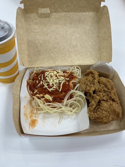 フィリピンのマクドナルドでチキンとパスタのセットを注文。ジョリビーのセットとよく似ていますが、麺は若干コシがありトマトソースもそれほど甘くありません。ちなみにジョリビーのパスタは茹で加減柔めのバナナケ...
