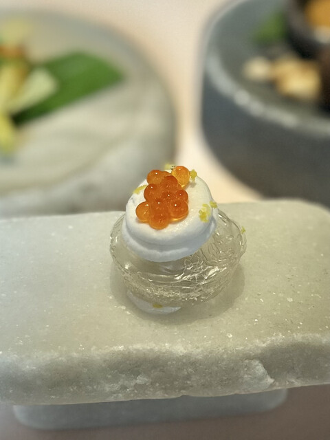 ⑬ブルークラブとXО醤 出汁の泡 いくら