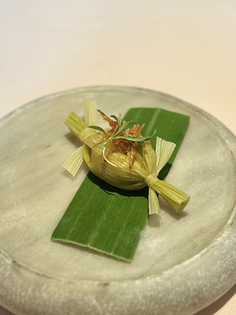 ⑨トウモロコシと海老とココナッツ トウモロコシの皮包み