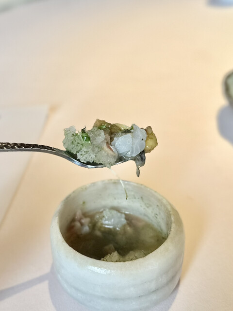 怒涛の少量多品種コースでした。基本はイノベーティブですが、フィリピン料理を再構築したような料理も多くてとても面白いですね。しかも素材に手を加えすぎず、そのものの形を保ったままになっています。どの料理も五味のバランスをしっかりと考えられているので率直に美味しいと感じます。特に印象的だったのは「⑦トマトシニガン」シニガンはフィリピンの酸味スープなんですが、シニガンぽさは感じませんね。それにしても見た目がトマト?なんか違う植物のようにも見えてとても謎が深い一品でした。そして「⑮タコ足のバーベキュー」これはバーベキューなので焼きなんでしょうね。それにしもかなり柔らかい。ここまで柔らかくするには相当に時間がかかると思います。ちょっと味が濃いめでしたが、非常に美味しい一皿でした。もうそろそろコースが終わりかと思うと、また一皿出てくる。量的にもかなり多かったんですが、先が見えないのはうれしい限り。デザートもコーヒーもとても美味しい。なかなか素晴らしいお店でした。