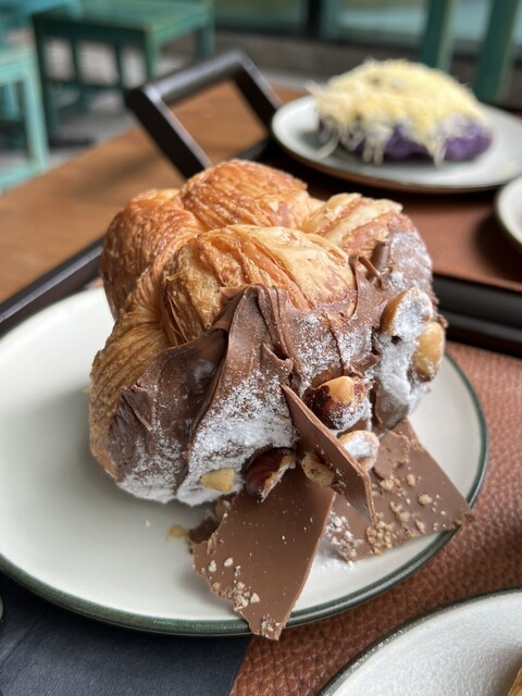 旦那さんの注文したヌテラのデニッシュも1個食べるのは朝には重いけど、シェアして食べるならいいかも。