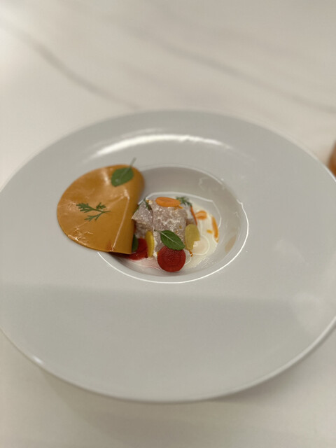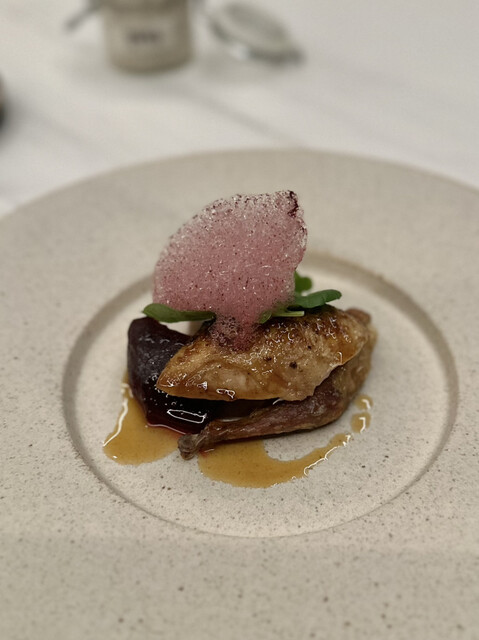 ⑩フランス産うずら ビーツ ハイビスカスの泡 ウズラのジュ