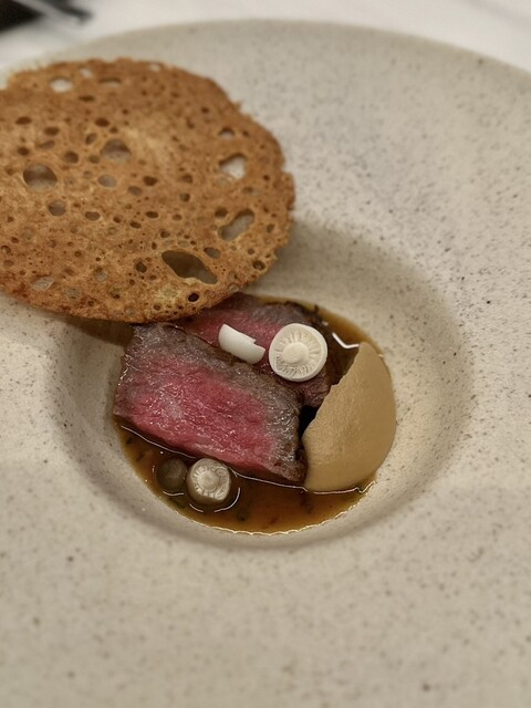 ⑧菊芋とチーズの泡 和牛のラグー 卵黄