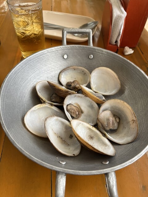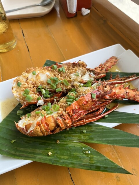 エルニドのビーチ沿いに佇むローカル感あふれるシーフードレストラン。店頭に並ぶ新鮮な海の幸を自ら選び、好みの調理法で仕上げてもらうスタイル。ロブスターは中サイズで1,200ペソ、貝の酒蒸し200ペソ、サ...