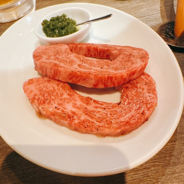 極みのタン(2人前)は、これまでにない柔らかみのある食感で、おすすめの一品。特上厚切り和牛のやみつき青唐辛子は、肉厚のお肉(カルビ)に青唐辛子をつけて食べるのですが、この青唐辛子が美味しい。他のお肉とかにつけてもとても合いました。あと、牛ツラミ(ほほ肉)は薄切りですが独特の食感と味わいでこちらも大変美味しかったです。
