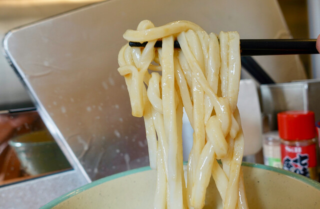 朝日に光り輝くおうどんの