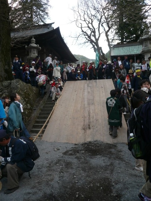 鳥居をくぐってすぐの坂をにっぱりあげているところ