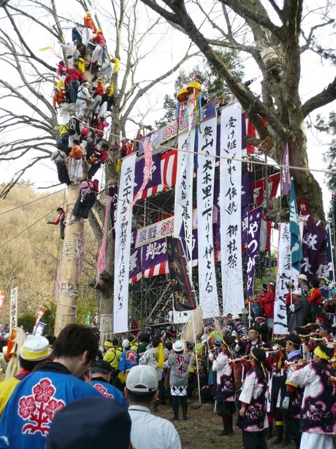 御柱祭ー里曳き2日目 建御柱 (2010/05/03)
