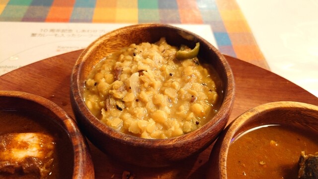 個人的な印象は「かつおふりかけのかつおだけ」なんですが、バスマティライスともよく合います。あとは野菜のおかず達もカレーの辛さを中和してくれるしピクルス的な口直しにもちょうどいい。プレート全体でのバランスはとても良い。