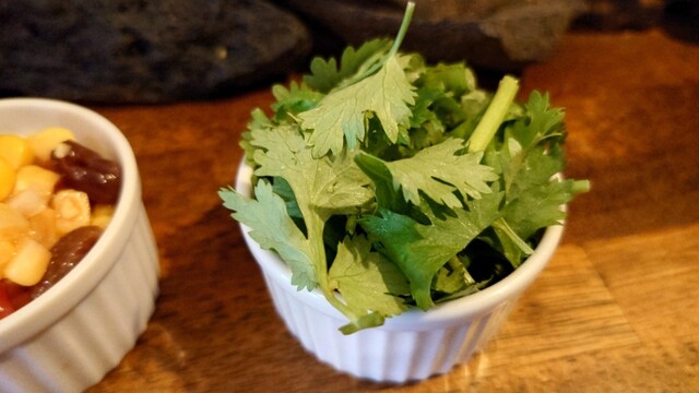 トッピングに追加したパクチーは清涼感が出て夏にはとてもいいんですが、ちょっと香りが強すぎた印象。カレーのスパイスが少しぼやけるのがもったいなかったかも。