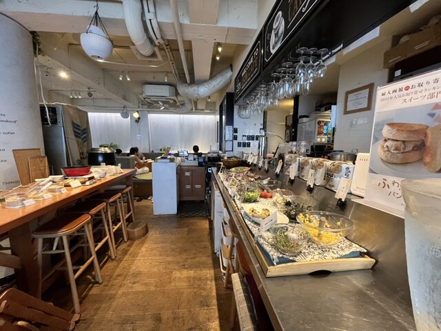 京都駅でめぼしい所が予約でいっぱいだったので、ひと駅隣の山科駅徒歩3分のこちらへ。ビルの3階、天上高し、席間ゆったり。ランチに付くサラダバー、スープの充実加減を体験いただきたし。ドレッシングも8種くらいあって、マンゴーのドレッシング美味しかったー。メインはエビたっぷりの贅沢なキッシュに。最後まで、ゆったり過ごすことができました!