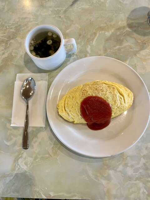 平日昼。提携駐車場にとめて、外観から期待通りのマルカンビル。界隈では一番高い建物です。ソフトクリームのクリームは、コーヒーフロートとはまた別物。ソフトクリームのほうが、甘さが強く、粘度が高い。最後までお箸で食べ続けられます。温度はコーヒーフロートのほうが冷たいです。オムライスのインサイドは、ケチャップカラーで、バターの効いた懐かし系。こちらは、食券を買ってからスタッフさんの制服まで。この体験全てが昭和です。楽しすぎます。どうぞこのままで。
