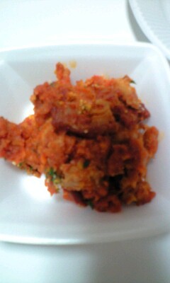 あ、そえられているのは、どでかい◎◎唐辛子。← 伏見の甘長だとおもうんだけど、ちがうかもだから、◎◎にしときますww こちら唐辛子とはいえ、からくないやつね。