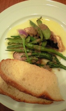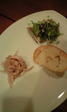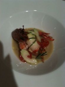 こちらのバヴァロア、すんごいとろけるんだけど、適度な弾力もあって、おもしろい!上に、マカダミアナッツとゆりねのスライスがのってました。塩とオリーブオイルが主役・・・なのかなあ。料理としては、そこまでの感動はありませんでした。