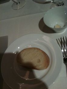 パンは、一種類のみ。 メゾンカイザーのトゥルトというパンでした。食事を邪魔しないパンではありますが、ちびちえとしては、いろんな種類のパンをたべたかったな〜ww