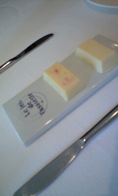 シェフのスペシャリテではありますし、確かに素材自体のおいしさをいただくという意味では実に面白い一品。 塩とオリーブオイルが主役なんですよww オリーブオイルも、フランス産で、オリーブの重みだけで絞られ、種部分は絞られてないから、エグミがひとつもないというオイルでした山羊の乳も、今朝京都でとれたばかり、空輸してとどいたものをバヴァロアにしたそうです。