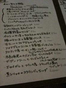 (ワイン2本あけてるし)高いワインをたのまなければ、かなりのお手ごろ価格ですみそうなビストロ。ほんと、え?この食材つかってこの価格?とか、バゲットやドフィノワ(ぐらたん)がおかわり自由!?みたいな、なんともうれしいお店ですね。 ほんと、五反田にあるのがびっくりなくらい素敵なお店でした。ワイン好きな友達にもおしえちゃったし、またこよ〜っと。今年行った店で確実に3本指にはいる店だな。そのくらい気に入りました。2010年7月にできたばかりなんだけど、すでにビストロ好きなひとたちには話題?のお店なのですよ〜。w