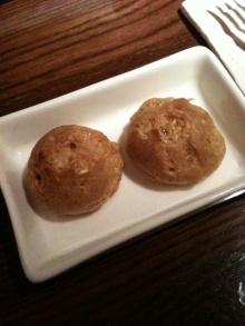 バターをつけてたべると、もうとまりません。このパン(ちいこいですが)を3つもたべてしまったので、残念ながらリゾットにたどりつけなかった。。。 食べすぎ禁物です。