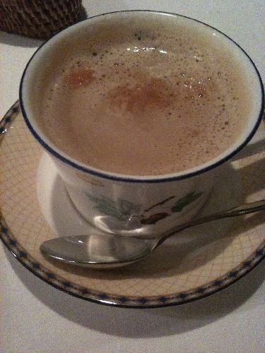 大人のモンテビアンコですね。ラム酒がとってもきいているので、大人のデザートですね。さくっとしたメレンゲの台にココナッツアイスと栗の渋皮煮と珍しいことにナッツもはいっています。マロンクリームは滑らかでとってもおいしい。あ~これだけでも食べにきたい。デザートがおいしいと最後まで堪能できて、笑顔で店を去れますね。