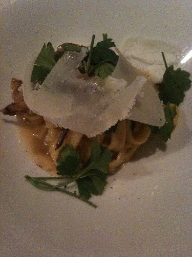 お肉自体ももちろんおいしいですが、このラルドとパルメジャンレッジャーノの薄切りを一緒に食べると絶品。肉自体の固さはしっかりとしているので、すが、このラルドとチーズが口のなかでとろけてちょうどいい塩梅になるのです。 初ラルド。おいしかったです。