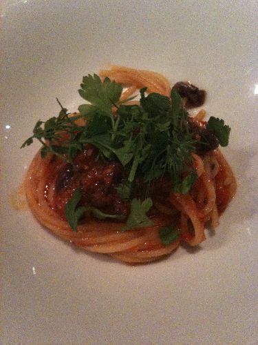 ごぼう本来の味もかんじつつ、ラグーソースにまけてない。もちもちしたタリアテッレとごぼうの歯ごたえのあるかんじが対比的で、またそれがよい