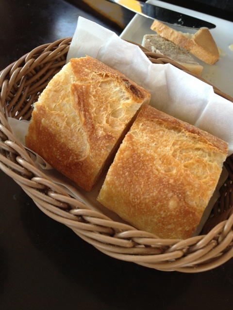 前菜、サラダ?、バゲット、スープ、メイン、デザート。