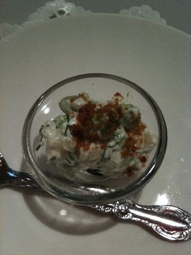 本来はあまいお菓子ですが、ここのは、甘さをゼロにして前菜にしたものでした。