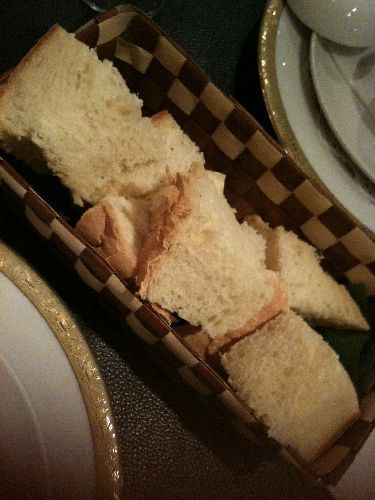 焼きたてではありません。でも、結構すきなかんじ。ちびちえ、皮部分のほうがすきだから、固い部分だけをいただきました。中はふわふわのイタリアのトラットリアとかオステリアとかででてきそうなふつ〜のパン。 なかのふわふわ部分は、ヴァポーレのスープをすわせていただいてもかなりおいしい。この食べ方おためしあれ。