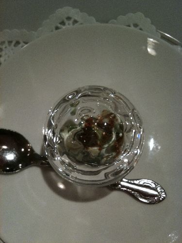 これ、めちゃくちゃおいしかった。ディナーの10皿コースの、1皿1皿はかなり少量なのでぺろっと食べられちゃいますよ。女子的には、かなりうれしいよね。いろんなものをちょこちょこいただくのが好きだし。