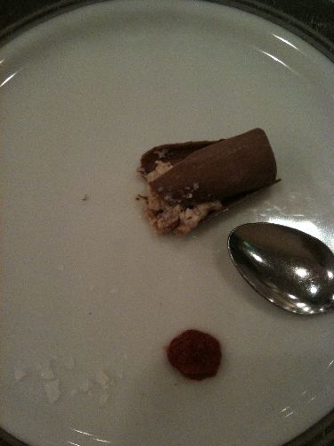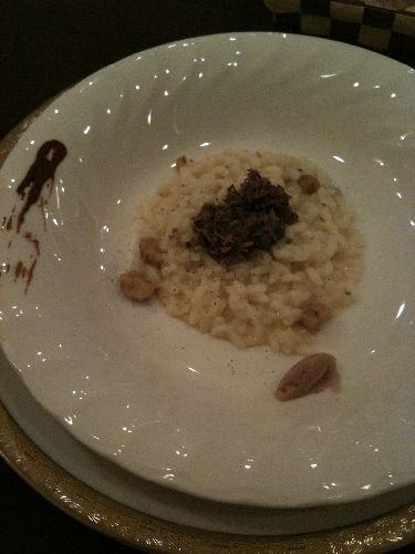 リゾットがここででてきたからね~。 イタリア栗はおいしかったし、そえられてるシナモンをちょっとつけていただいても美味。