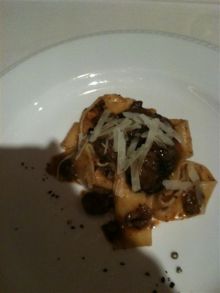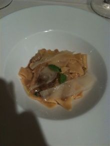 ああ、これ、、肉厚のポルチーニの香りがすんごいよくって、その上に、最初にいただいたチーズ(グラーナ・パダーノ。でもこちらはスライスしたversion)がのっかってて、、、濃厚すぎないけど、じっくりと味わいたい・・とおもっちゃう、秋パスタ。 鼻腔からかぐわしい香りがす〜っとぬけちゃうかんじ。