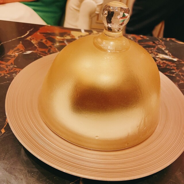 →ハーモニーというタイトルがぴったり!!わたしとリッキーは、この一皿が本日のナンバーワン。田村牛と、日本産ポルチーニのヤマドリタケモドキの相性が抜群。国産ポルチーニってだけでも、稀有すぎる食材なのに、これまた貴重すぎる田村牛と、スープ仕立てのようにしてて…ふわっとなんとも言えない香りが嗅覚もくすぐります。