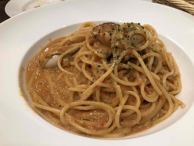 追加で頂いた牡蠣と蟹味噌のトマトクリームパスタ 1400円