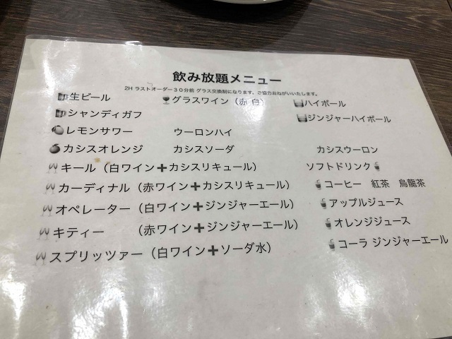 (2時間)飲み放題付き4000円のコースを頂いた。