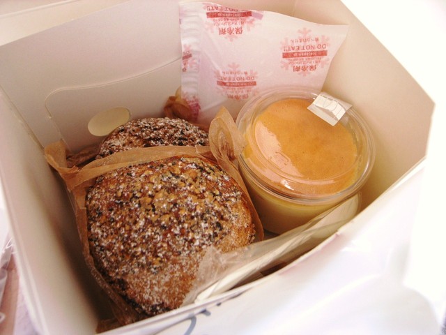 香ばしい胡麻がトッピングされた薄皮の生地に目いっぱいカスタードクリームが詰まっています。