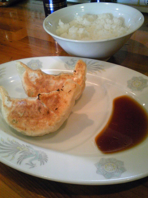 セットは、ライスとジャンボぎょうざ2個付き。