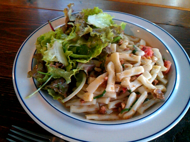 パスタは歯ごたえがあり、食感は例えていうなら「吉田うどん」のようなつるつるしこしこしたものです。
