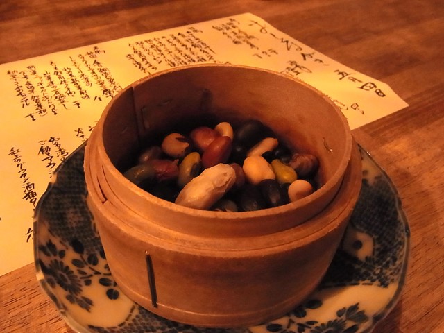 わりとすぐ出る「塩豆」をつまみながら、早々に日本酒へ移行した。
