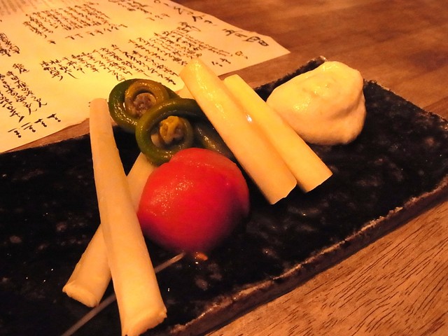 ■漬物盛り 思ったより時間がかかるがぜひ注文したい。自家製の糠漬け、麹漬など発酵食品好きにはたまらん!