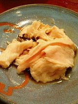 付きだしのお漬物をいただいた後はタンのお刺身ツンゲ