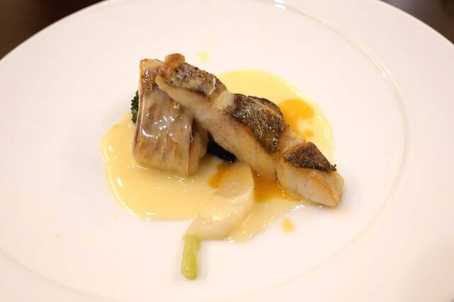 魚料理は、イサキ、舌平目とスズキだったか?白身3種にエビが付いています。