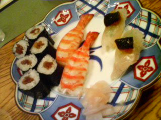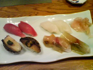 穴子の白焼き、マグロのトロの大根おろし添え。